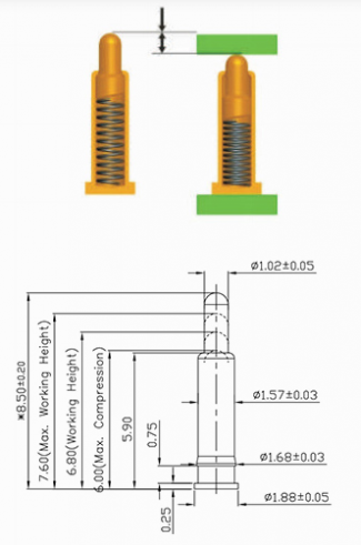 পোগো পিনের মৌলিক কাজের উচ্চতা (স্প্রিং-লোডেড কানেক্টর):