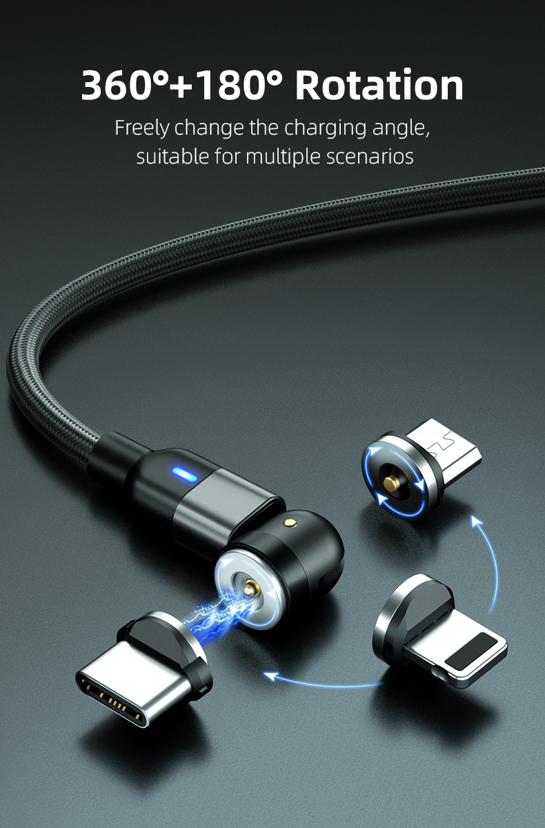 540-ডিগ্রি ঘূর্ণায়মান 3 ইন 1 চৌম্বকীয় দ্রুত চার্জিং পোগো পিন কেবল